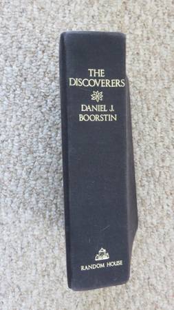 The Discoverers by Daniel Boorstin. Great book - Google it! Hardback. Some insignificant water marks at the top of very last pages and slight warping of covers, from a water spill. Perfectly readable . . . . . $4