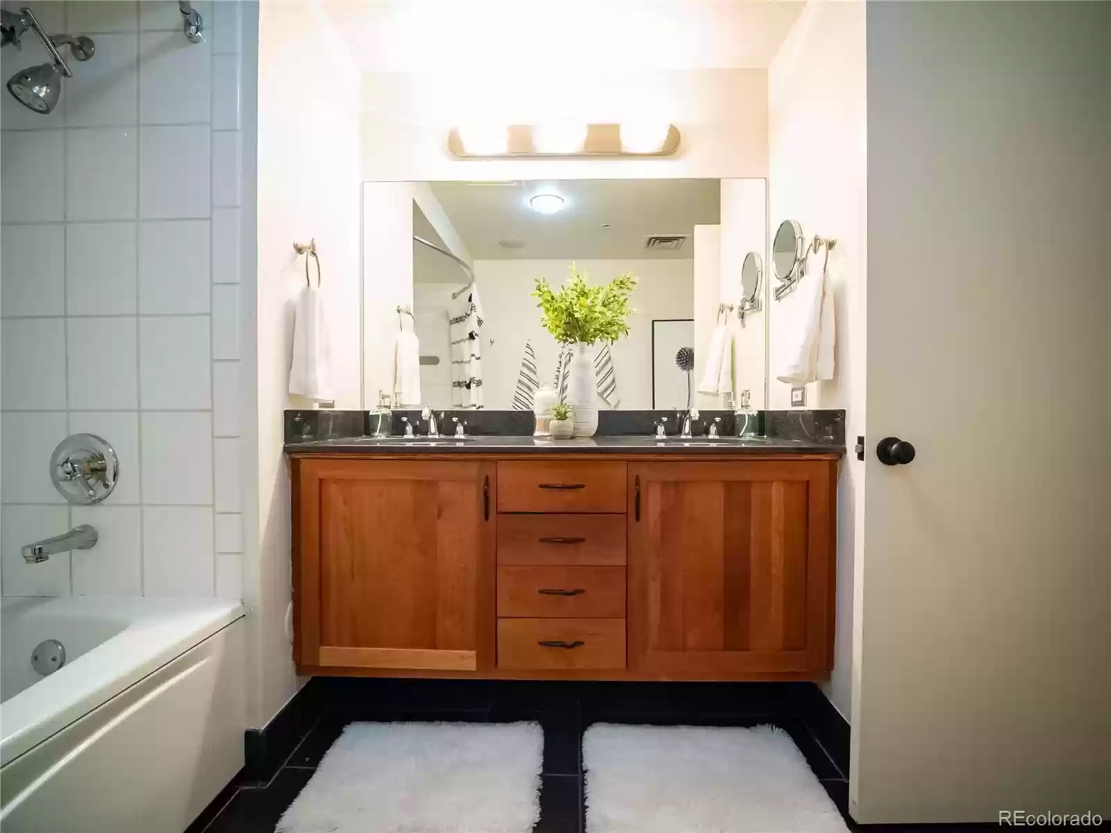There's even a bar area in the dining space with a wine fridge and even more storage. Just steps away, you can enjoy your morning coffee on the balcony, which is very quiet since it doesn't face the street.Back inside, the bedroom boasts a custom walk-in closet, plus a spacious ensuite bathroom with a dual-sink vanity and plenty of storage. Your guests can use the hallway bathroom, which also has a stand-up shower.This condo is so large, it includes in-unit laundry and there are numerous ways you could set up your home office. Don't forget about the deeded personal parking spot in a temperature-controlled underground garage. Also, an EV charging station will be installed at your spot this year, so you have the option of using it as part of the HOA.Other amenities offered in this boutique building include an extra storage unit, upgraded security, an elevator and a climate-controlled personal wine storage locker.Of course, you can't beat this location! All of Downtown Denver is just steps from your front door. At the end of the block, you can hop on the Cherry Creek Trail, and the 16th Street Mall is just one block in the other direction.